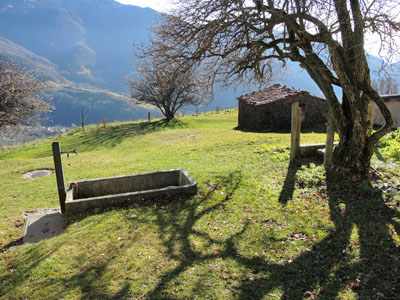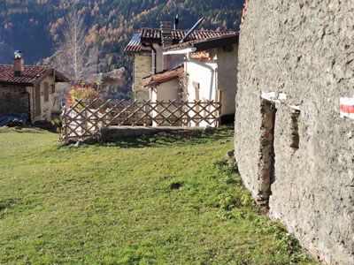 Un'altra immagine delle case di Barchi. Questo bel nucleo di baite ristrutturate situate tra i 1240 e i 1260 metri di quota, ha oggi un carattere soprattutto residenziale ed è raggiunto da una stradina (chiusa per i non residenti) che parte da Colla. |