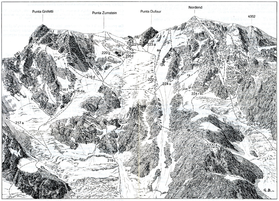 Gino Buscaini. Monte Rosa, parete Est (Guida dei Monti d'Italia, MONTE ROSA, pp. 434-435) Pubblicata con l'autorizzazione di Silvia Metzeltin (moglie dell'autore, purtroppo prematuramente scomparso) Indietro (torna alla Storia alpinistica - I parte) Indietro (torna alla Storia alpinistica - II parte) |