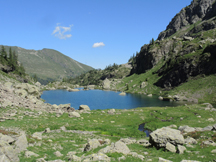 Nel primo caso si segue una traccia sulla sponda occidentale del lago e si raggiunge il bel pianoro erboso sulla sua sponda meridionale. Lo si attraversa costeggiando il lago e si raggiunge il sentiero (segnavia bianchi e rossi) che, lungo la sponda orientale, riporta indietro, alla parte opposta dell’emissario del lago (il giro richiede un po’ meno di mezzora). Qui troviamo alcune indicazioni (scritte in vernice sui sassi e segnavia bianchi e rossi): si prende il sentiero per il Lago di Pescegallo e si sale verso Nord (l’altro sentiero porta al Lago di Trona e, in piano, punta a un palo giallo e nero prima di abbassarsi verso il lago) raggiungendo il sentiero n. 8 sotto una parete di roccia nera e strapiombante (1900 m c.a). Si segue questo sentiero verso sinistra (Nord) e, con qualche breve saliscendi, si raggiunge l’itinerario della tappa al bivio segnalato di quota 1890 m (ore 0,30 dal Lago Zancone). Da qui, verso destra, si prosegue verso la sella erbosa del Pich.