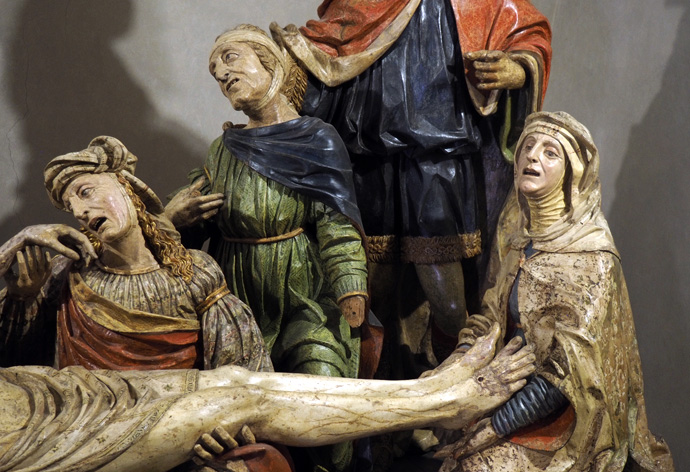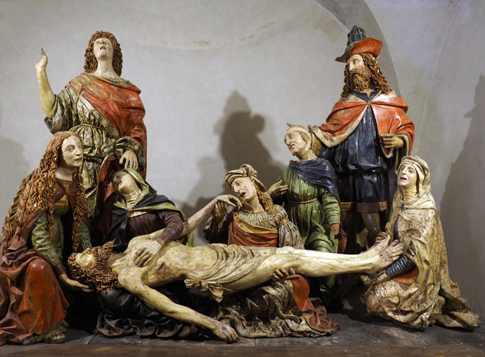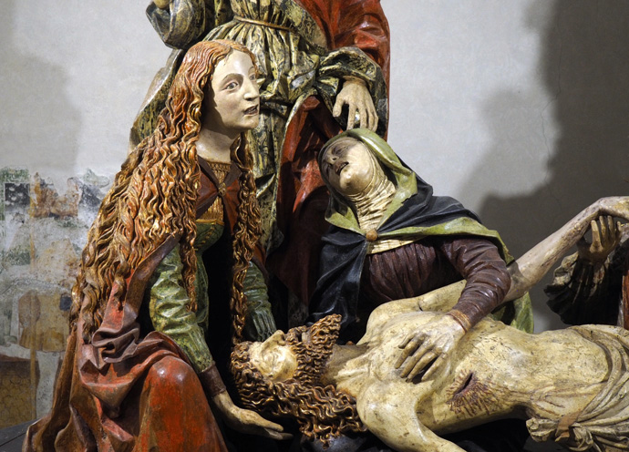 Il Compianto sul Cristo morto è un tema fondamentale nell’arte sacra; esso raffigura il dolore della Vergine e di quei seguaci di Cristo che, secondo la narrazione dei Vangeli, erano presenti al momento della deposizione dalla croce. Scopo del soggetto è quello di esprimere drammaticamente l’epilogo della vicenda terrena di Cristo (prima della Risurrezione) e di coinvolgere lo spettatore nel dolore straziante della Madre e dei discepoli di Gesù, enfatizzando le loro espressioni sfigurate dal pianto, in particolare quelle dei personaggi femminili della scena.