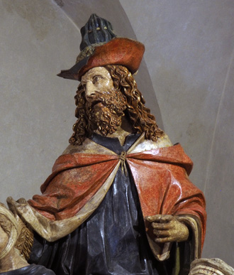 L’opera, che risale al 1515 o forse a pochi anni prima, è attribuita allo scultore e intagliatore milanese Giovanni Angelo del Maino (attivo tra il 1496 e il 1536) con l’intervento del fratello Tiburzio che, secondo alcuni studiosi, avrebbe avuto addirittura un ruolo prevalente. Entrambi si erano formati nella bottega del padre, Giacomo del Maino, prima a Milano e poi a Pavia, e spesso avevano lavorato insieme all’esecuzione di opere complesse come questa.